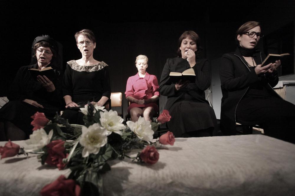 Arto Seppälän kirjoittama Viisi naista kappelissa on groteski komedia, tragikomedia, kuten kirjailija itse tekstinsä määrittelee. Nämä viisi naista kokoontuvat siunaustilaisuuteen saattamaan itsemurhan tehnyttä Kalervo Räsästä hänen viimeiselle matkalleen. Kalervo Räsänen on päättänyt järjestää yhteisen tapaamisen hänen elämänsä keskeisille ja tärkeille naisilleen. Kutsuttuja on ainoastaan viisi naista: vainajan äiti, miehen entinen vaimo ja nykyinen, rakastajatar sekä unelmien kohde, sairaanhoitaja.
