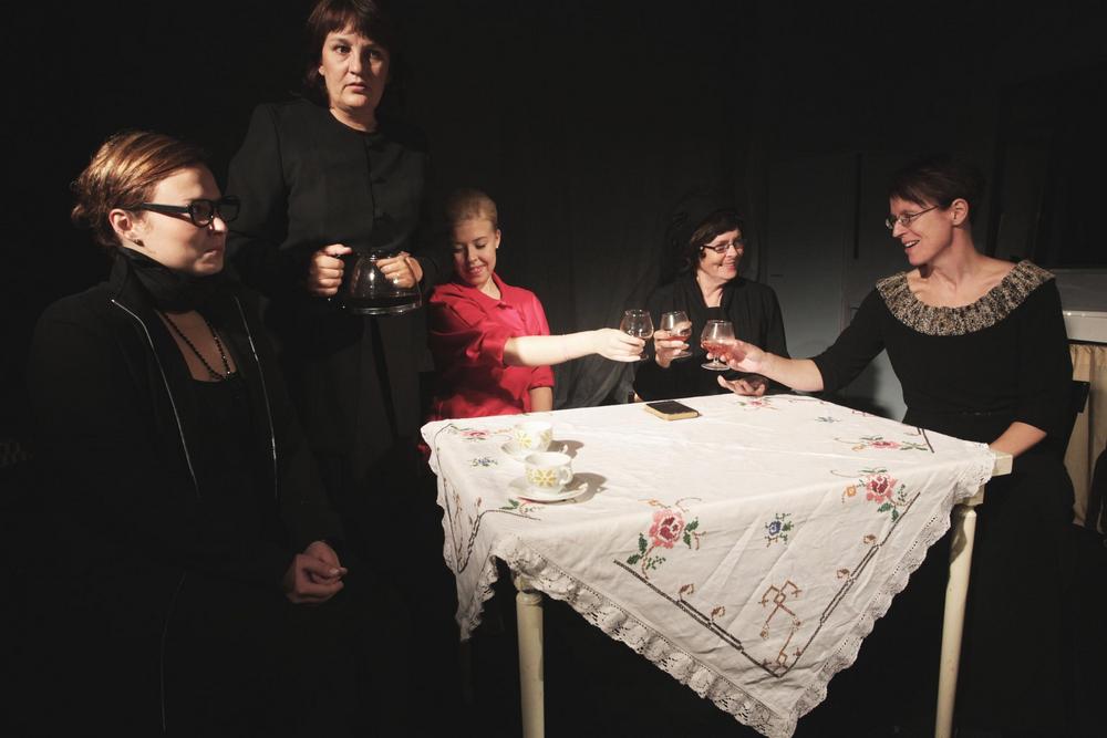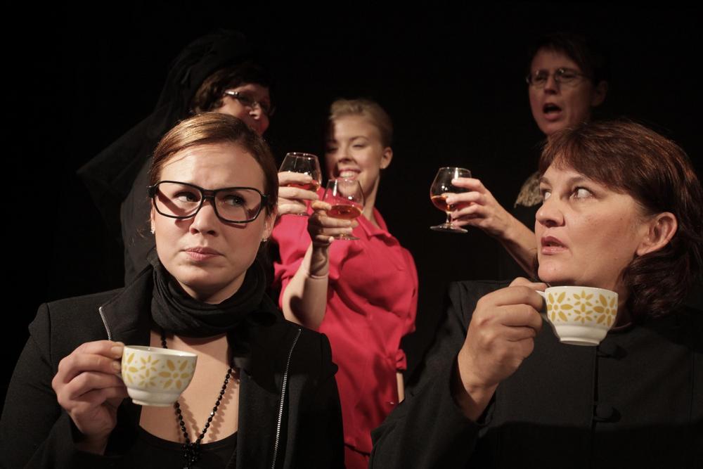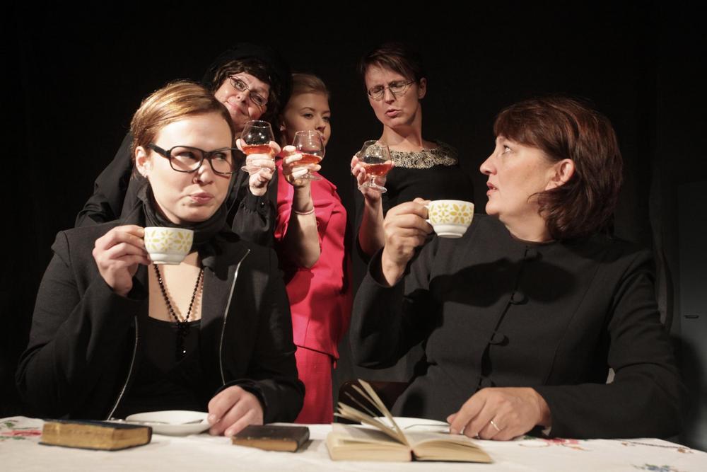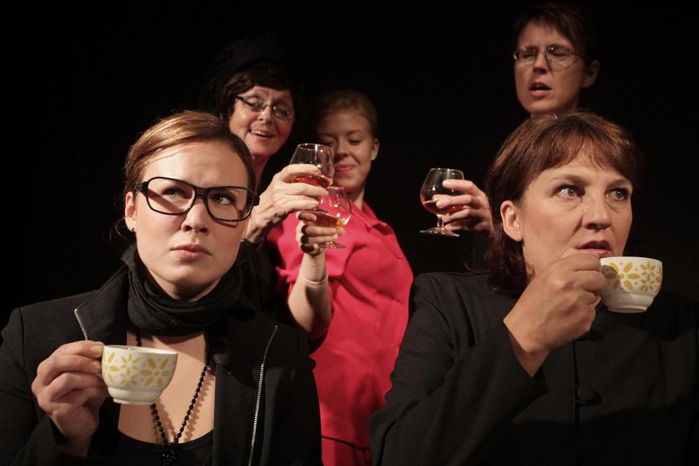 Rooleissa Pirkko Virén, Irma Jäppinen, Eeva Vauhkonen, Zelda Fritz ja Annika Korpela